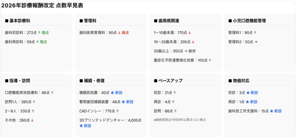 2026年度(令和8年度)の歯科診療報酬改定点数が正式に公表されました。