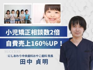 目次1 法人概要2 なぜ依頼したか3 実施した内容3.1 「自費率の拡大」3.2 「小児歯科の拡大」4 成果 法人概要 医療法人津島にしおわり中央歯科おやこ歯科様は、愛知県津島市で「お口は健康への入り口。さまざまなお口 … 続きを読む 公式LINEを用いたカウンセリング手法で小児矯正相談数2倍、自費売上160%UP!
